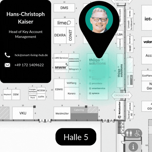 Als Teil der Thüga EDL-Lösungswelt gestalten wir den ganzheitlichen Lösungsvertrieb aktiv mit und bringen neue Energielösungen in die Umsetzung. Wir sind dieses Jahr am Stand der thüga solutions in Halle 5.